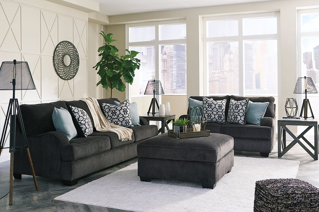 Introducing the Charenton collection by Ashley, where comfort meets modern sophistication. The Charenton Loveseat in Charcoal offers a compact yet inviting seating solution, measuring 66W x 41D x 39H and weighing 107.0 lbs. Its sleek design and plush cushions provide a cozy retreat for lounging or entertaining. Accompanying the loveseat is the Charenton Sofa, with generous dimensions of 93W x 41D x 39H and a weight of 138.0 lbs. Both pieces feature a stylish Charcoal upholstery that effortlessly complements various interior styles, making the Charenton collection a must-have for those seeking timeless elegance and comfort in their living space.