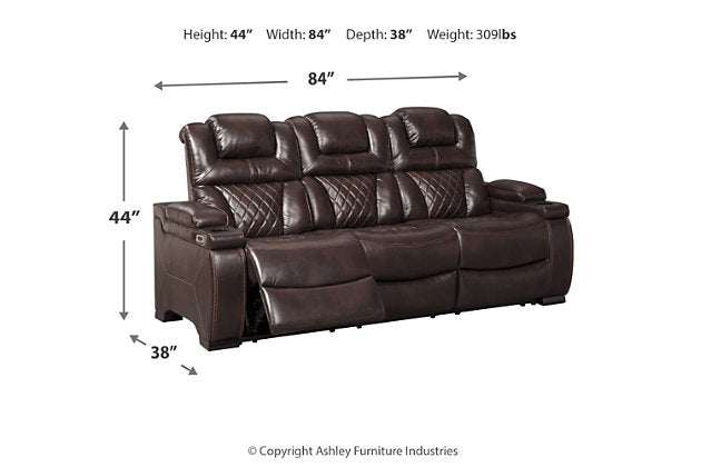 Warnerton - Chocolate - PWR REC Sofa with ADJ Headrest