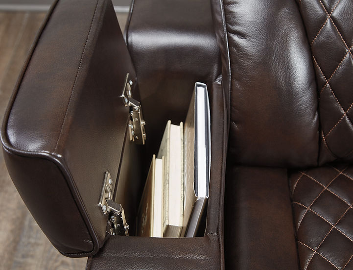 Warnerton - Chocolate - PWR REC Loveseat/CON/ADJ HDRST