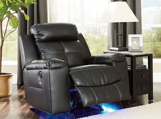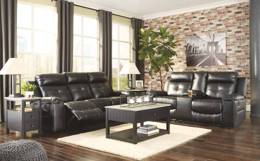 Introducing the Ashley 82105 Kempten collection, where comfort and style unite seamlessly. In a bold Black hue, this collection adds a touch of contemporary elegance to your living space. The Kempten - Black - Reclining Sofa, measuring 88 inches in width, 40 inches in depth, and 42 inches in height, offers a spacious and inviting seat, complete with reclining functionality. Accompanying this, the Kempten - Black - DBL Rec Loveseat w/Console is sized at 76 inches in width, 40 inches in depth, and 42 inches in height, providing additional convenience and comfort. Elevate your relaxation with the Ashley 82105 Kempten collection, where timeless design meets enhanced functionality.