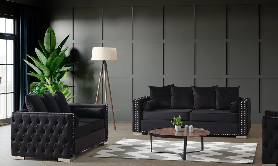 Introducing the S6302 Lotus collection, a blend of sophistication and comfort in elegant Grey and Black tones. Crafted with luxurious velvet material, this collection seamlessly integrates style and relaxation into your living space. The sofa, measuring 82 1/2"L x 34 1/2"D x 26"H, offers ample seating with a touch of opulence. The loveseat, sized at 59"L x 34 1/2"D x 26"H, provides a cozy yet refined spot to unwind. Elevate your home ambiance with the S6302 Lotus collection.