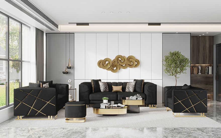 Elevate your living space with the luxurious S902 Designer Sofa in Black with striking gold details. Crafted from sumptuous velvet, this sofa exudes elegance and opulence. With dimensions of 85"W x 37"D x 30"H, it offers a comfortable and stylish seating option. Complementing the sofa, the S902 Designer Loveseat measures 69"W x 37"D x 30"H, providing a cohesive and sophisticated seating arrangement. The accompanying S902 Designer Chair, with its dimensions of 44"W x 37"D x 30"H, adds a touch of refinement to any corner of your space. Embrace the lavish design and rich color palette for an exquisite aesthetic in your home.