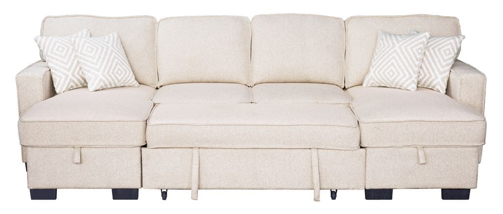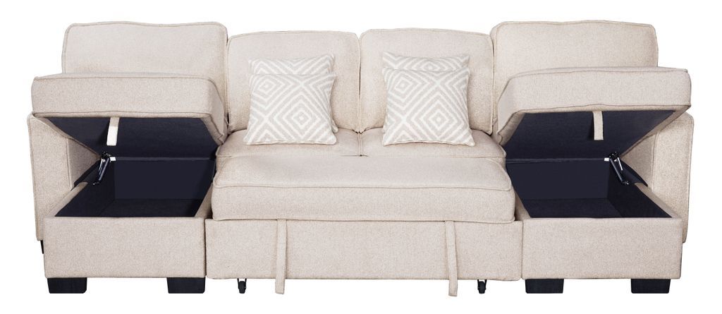 Sahara Beige - Double Storage Chaise Sectional w/ Drop Down Cupholders **NEW ARRIVAL**