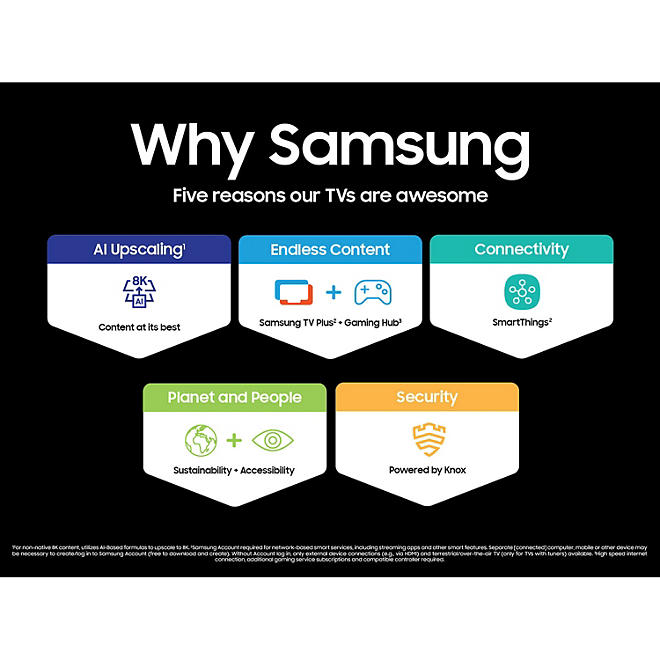 4K Upscaling: Get a clearer picture for more of your shows and videos. 4K Upscaling transforms each pixel for improved content.