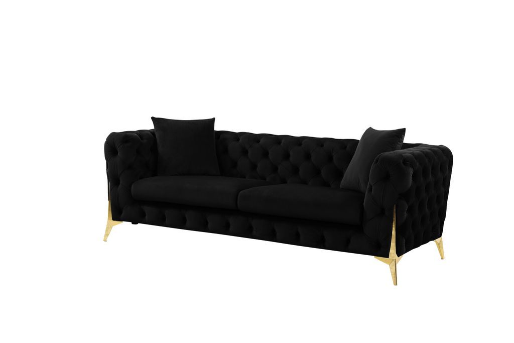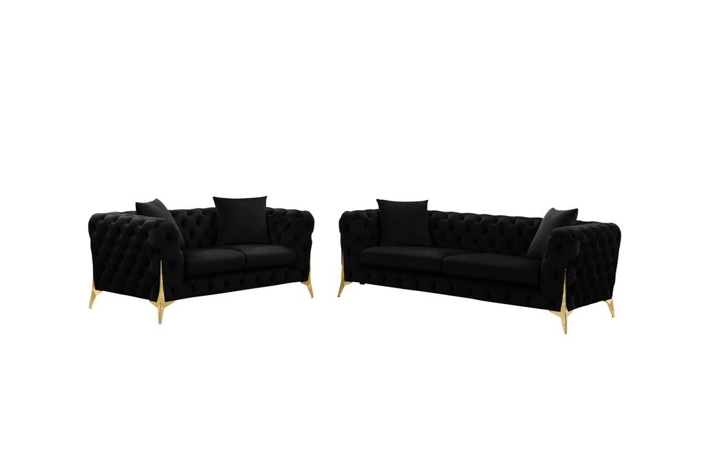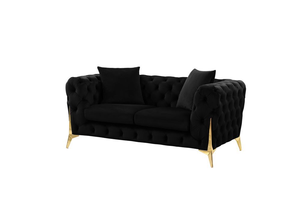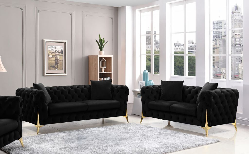 Description: 2pc Sofa and Loveseat Set in velvet material and strong gold legs.